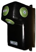 The ideal way to utilize bare wall space in the gym. Also perfect for those who can't hang a heavy bag from the ceiling. The perfect combination of protruding and angled top half (head) with the intense bottom area (body) that is contoured in and flat on the surface for all strikes and kicks. Unleash every punch and weapon in your arsenal with jabs, hooks, uppercuts, straight shots, angled shots, body punches, knees, kicks and more. Measures a stunning 24" long by 16" wide, with 15" of thickness at the top and contouring down to 8" deep at the midsection area. All-leather outer with triple stitched seams and expertly placed target zones. Medal frame makes for easy installation on wood stud or masonry walls.