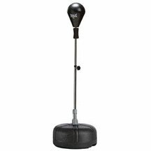 High density plastic base, easily filled with water or sand. Weighs 65 lb. when filled with water. Durable spring neck. Shock absorbing foam with protective outer layer Adjustable height up to 63" tall. Workout poster included.